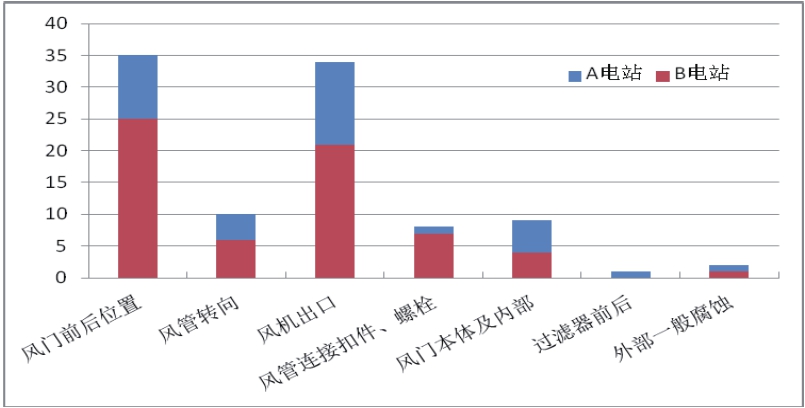 从发电站保修操作系统性中查资料时代通风落水管生锈相应的事件真相,对生锈的座位种类做出统计显示,关键例如六类:进气阀内外(联接通风落水管、螺栓、进气阀)、通风落水管跳转座位(异径三通、导风配置)、引通排烟风机口到通风落水管、进气阀主机及里面的元件、脱水器内外,各生锈种类在调查方案研究的一座核发电站关键规划原因所显示1所显示,该結果与直播调查方案研究結果共同,表中引通排烟风机口到、进气阀及内外通风落水管、通风落水管提升路径(紧挨引通排烟风机口到)座位是最关键的生锈损坏的座位。